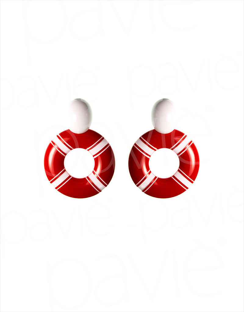 Orecchino ciambella rigata con toppa resina. Anallergico